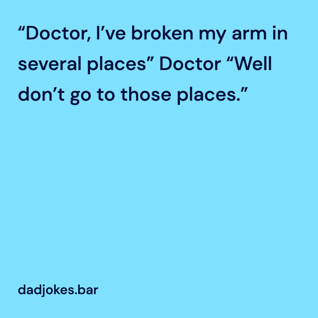 “Doctor, I’ve broken my arm in several places” Doctor “Well don’t go to those places.”
